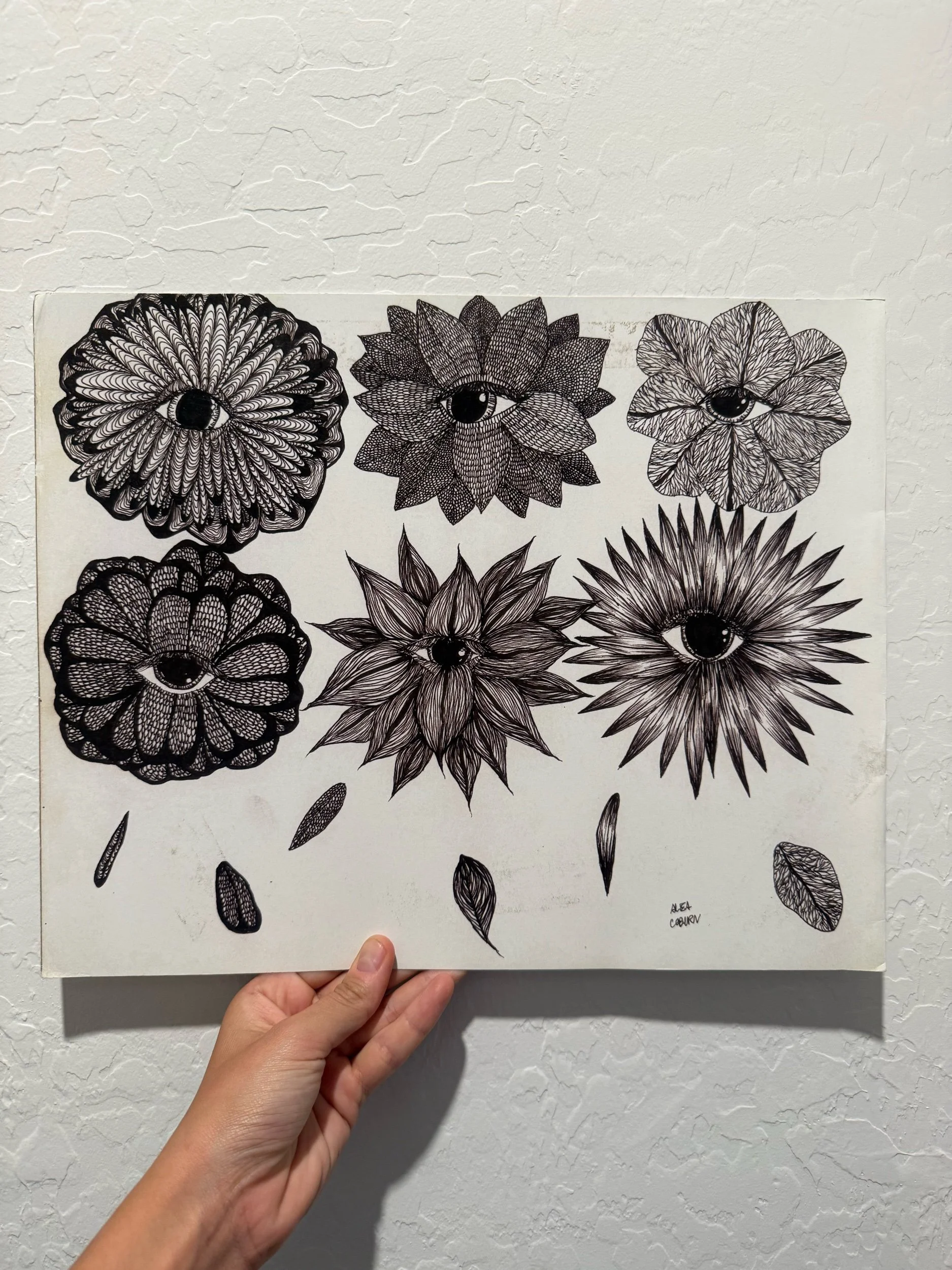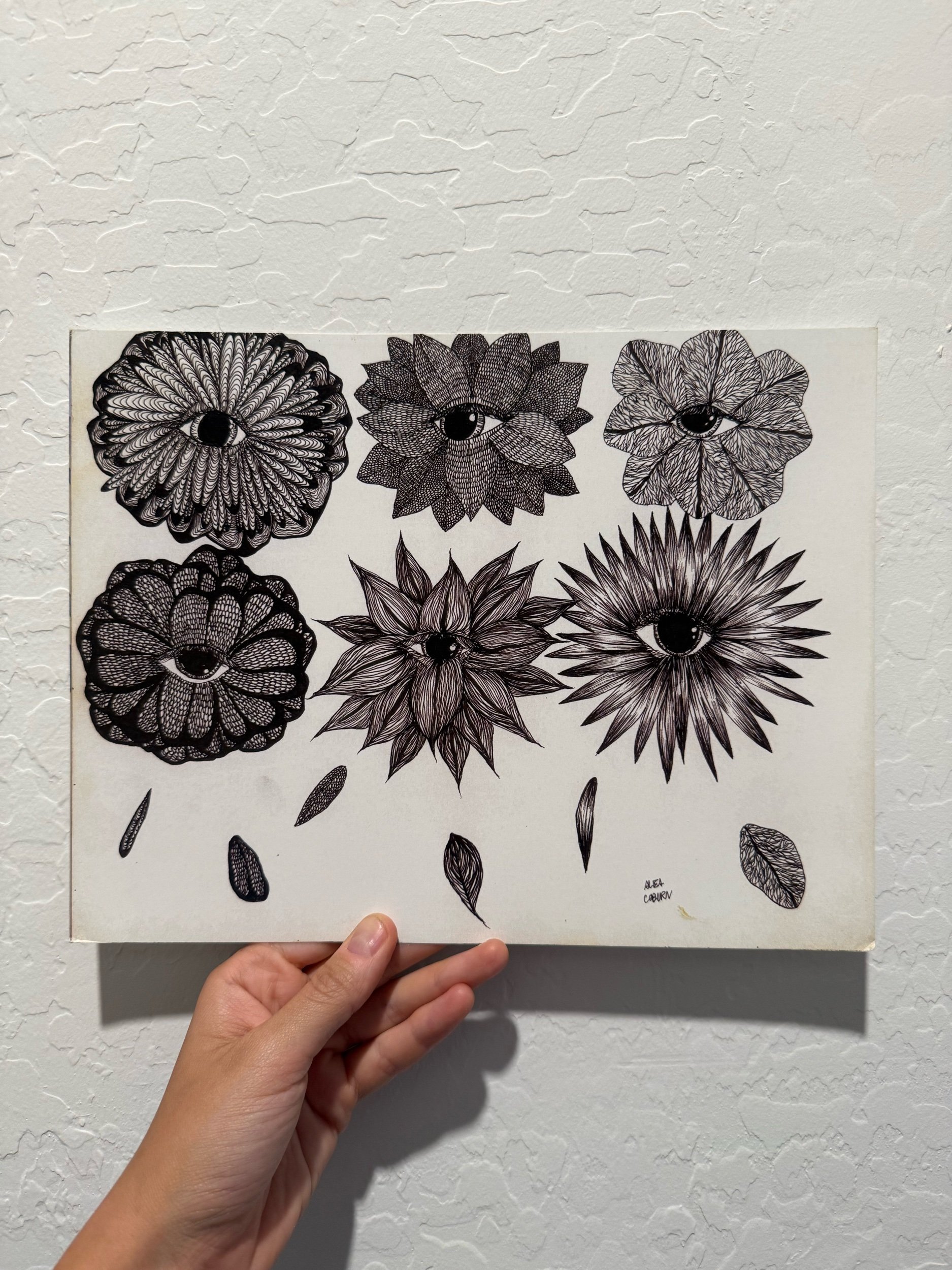 BUY HERE NOW: Overwhelmed To Oracle: A Subconscious-Rewriting Game › Eye Flowers Image 1 of 2 Image 2 of 2 Eye Flowers from $25.00 Seeing-flowers printed on poster paper Size: Select Size 8.5”x11” 14”x11” Add To Cart Added! Seeing-flowers printed on poster paper